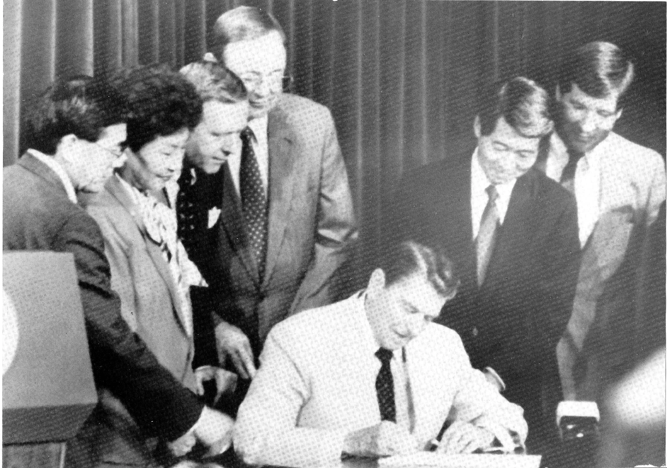 More than 45 years after their imprisonment, President Ronald Reagan signed The Civil Liberties Act into law. This included a formal apology and monetary reparations to Japanese Americans. Monuments were built to commemorate their loyalty and patriotism.